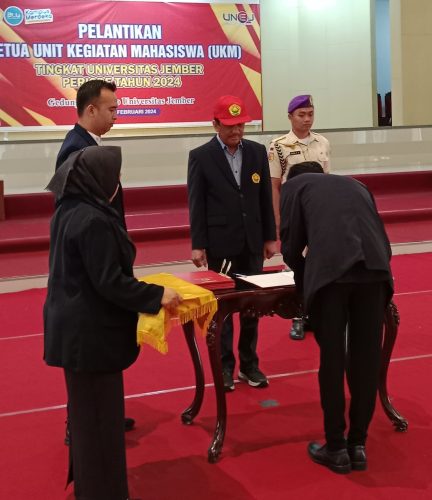 Jember – Tegalboto, Pelantikan Ketua Unit Kegiatan Mahasiswa (UKM) tingkat Universitas Jember (UNEJ) periode 2026 sukses digelar pada Kamis siang (29/01) di Aula lantai 3 Gedung Rektorat. Pelantikan tersebut tidak hanya menjadi agenda seremonial, tetapi juga menandai awal regenerasi kepemimpinan organisasi mahasiswa (ORMAWA) di lingkungan kampus. Pelantikan berlangsung khidmat, diawali dengan penandatanganan berkas pelantikan oleh…
